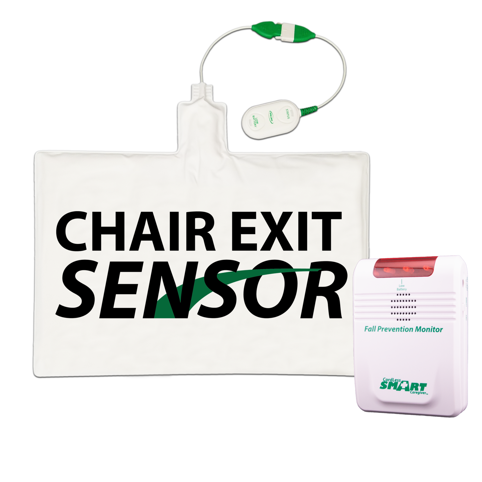 The Wireless Chair monitoring system provides a low cost, quiet, cordless solution for caregiver to know when someone is getting out of a chair. The chair sensor pad sends a wireless signal to a receiver alerting the caregiver someone is trying to get up.
