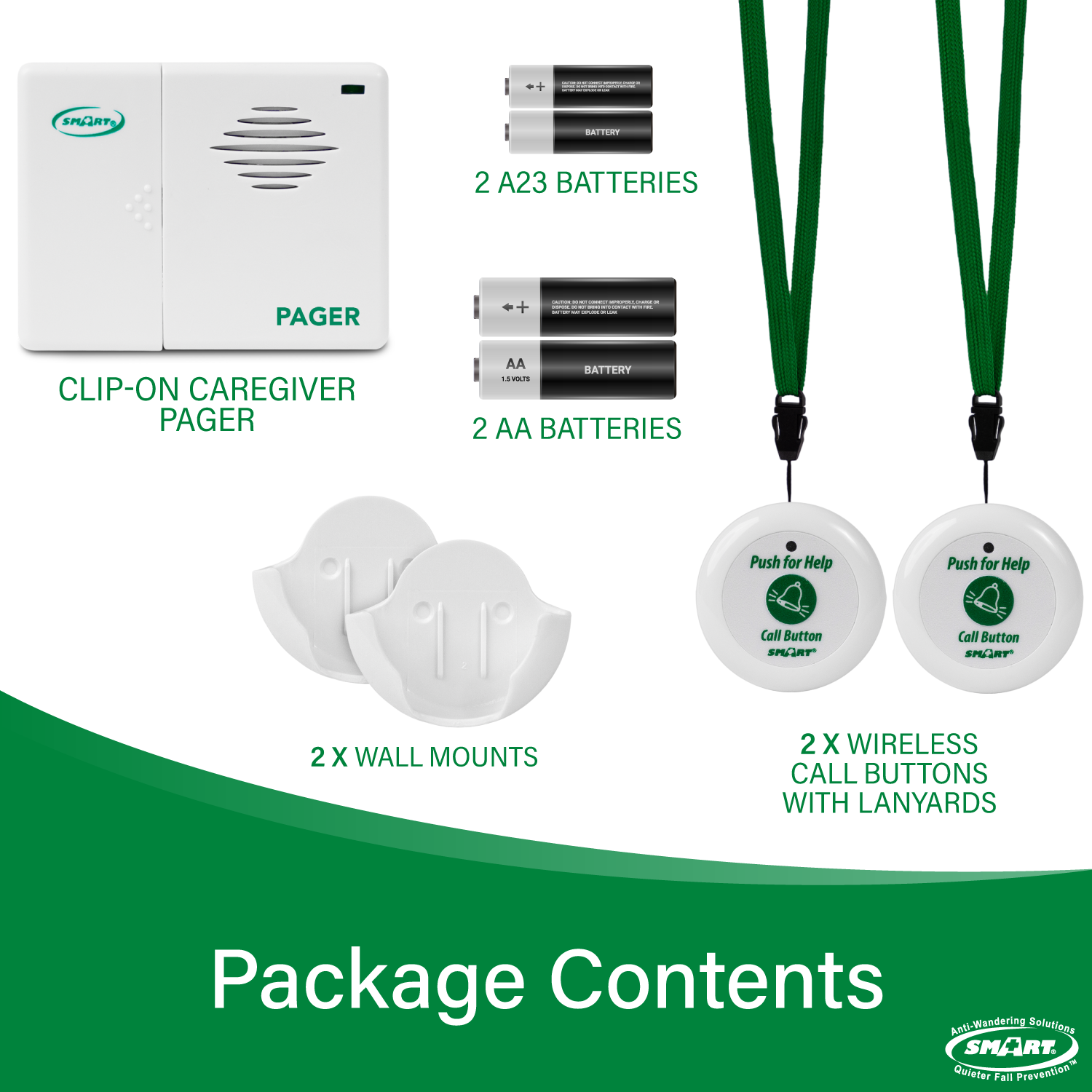 • Easy Setup and Use: Includes two call buttons, lanyards, batteries, and mounting materials for straightforward installation.