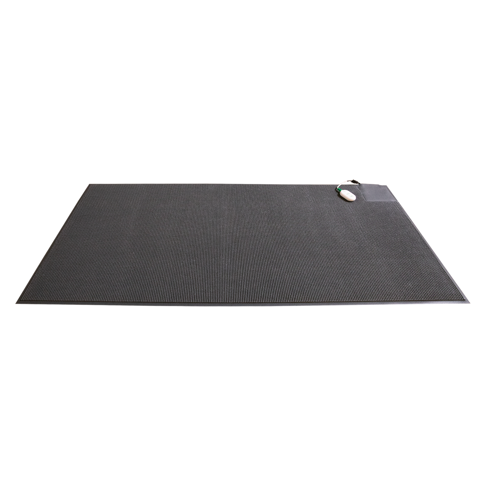 This pressure sensing Wireless Floor Mat automatically alerts the caregiver when someone puts pressure on the mat. This large size is best used next to a bed. The mat is a professional grade heavy duty, non-slip rubber with beveled edges so that it is flat with the floor.